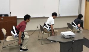 HALの最先端テクノロジーを味わうために、使用者に「HAL短期集中レッスン」を実施しました。 HALのアシストを上手に受けられるために、サイバーダイン社の体操のお兄さん(営業の工藤さん)にレッスンをしてもらいました。 習熟したHALマスターと同様にアシストを感じられるコツを9名が体感しました。 今後も法人内のHAL管理者が続けてレッスンを計画します。 一人でも多くの職員にこの最先端テクノロジーを体感して欲しい!